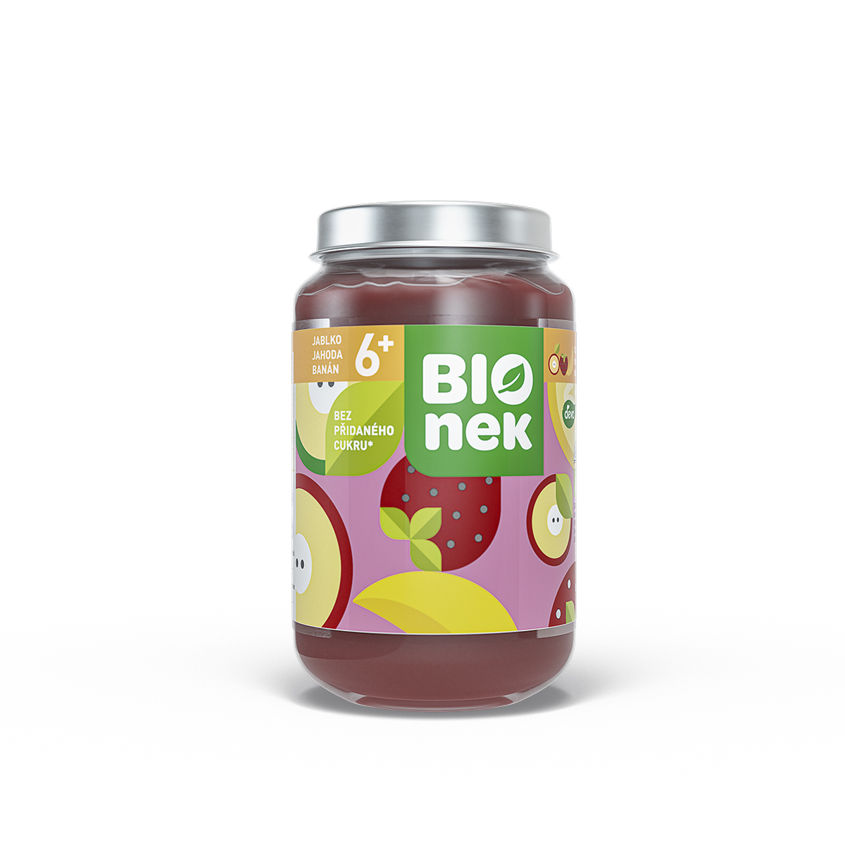 Piure natural BIOnek capsuna, mar si banana pentru copii si bebelusi de la 4 luni