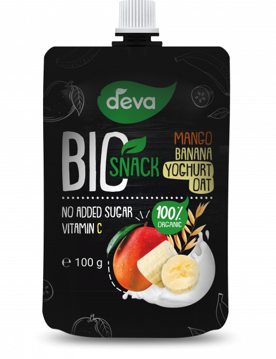 Gustare BIO mango, banana, iaurt si ovaz 100g pentru copii peste 3 ani si adulti.